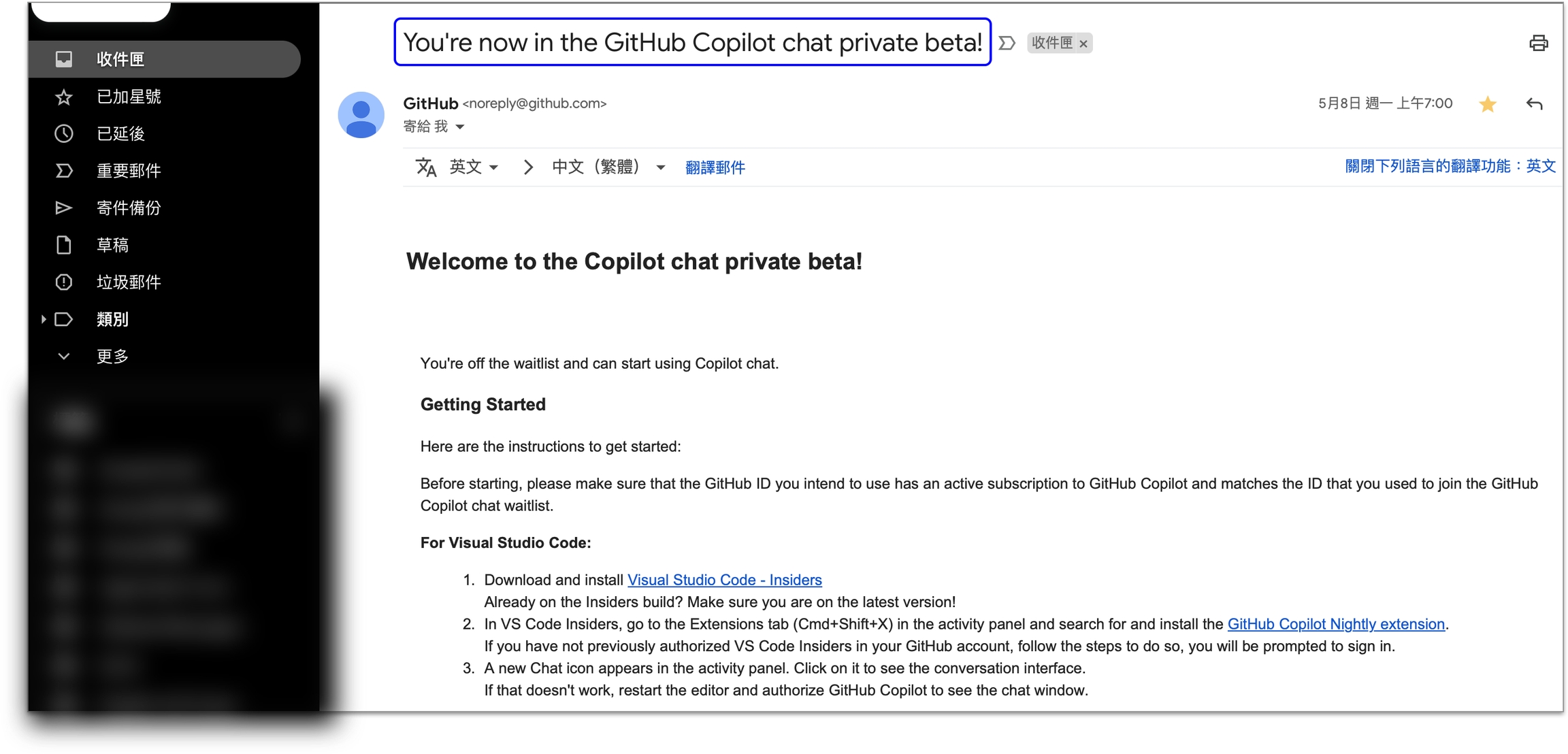 因為我有加進「等候名單(waitlist)」,所以若可以使用時,就會收到如下的 email 通知: