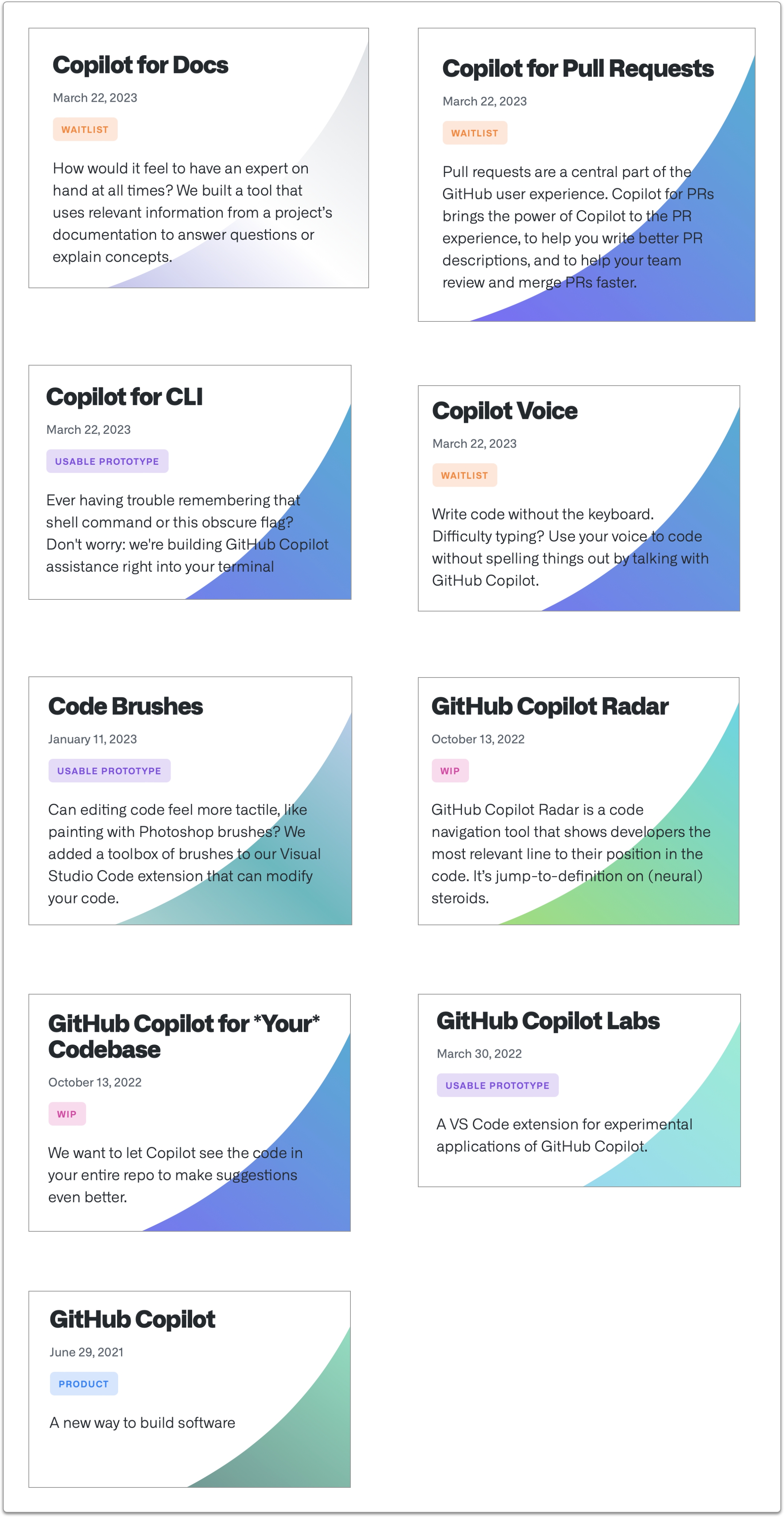 以下列出與 Copilot 有關的(GitHub Copilot 於 2021/06 正式推出):
