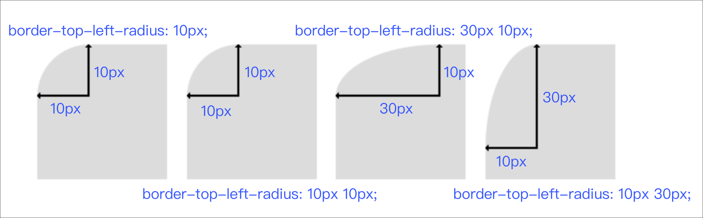 border-radius: 10px 20px 30px 40px;border-radius: 10px 20px 40px;border-radius: 10px 20px;
