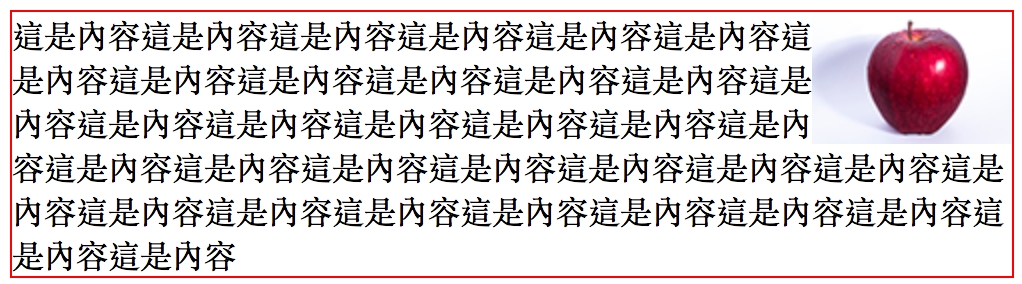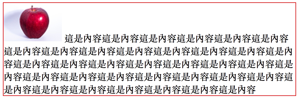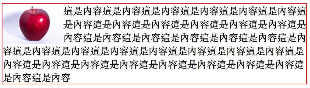 }結果:發現紅框的高度,並沒有跟著圖片增加,因為該圖已設定成浮動元素